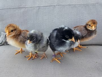 One of our most popular groups we sell! These cuties are a melting pot of several different color layer breeds. This variety includes mixed bloodlines including Silverudd Blue, Cream legbars, and Ameraucanas. Chicks from this group come in all sorts of colors! Hens from this group will lay egg colors ranging from blue/green to dark moss/army green. Typically we see standard to large egg size from this group. This group is sold straight run, meaning chicks have a 50/50 chance of being male/femal